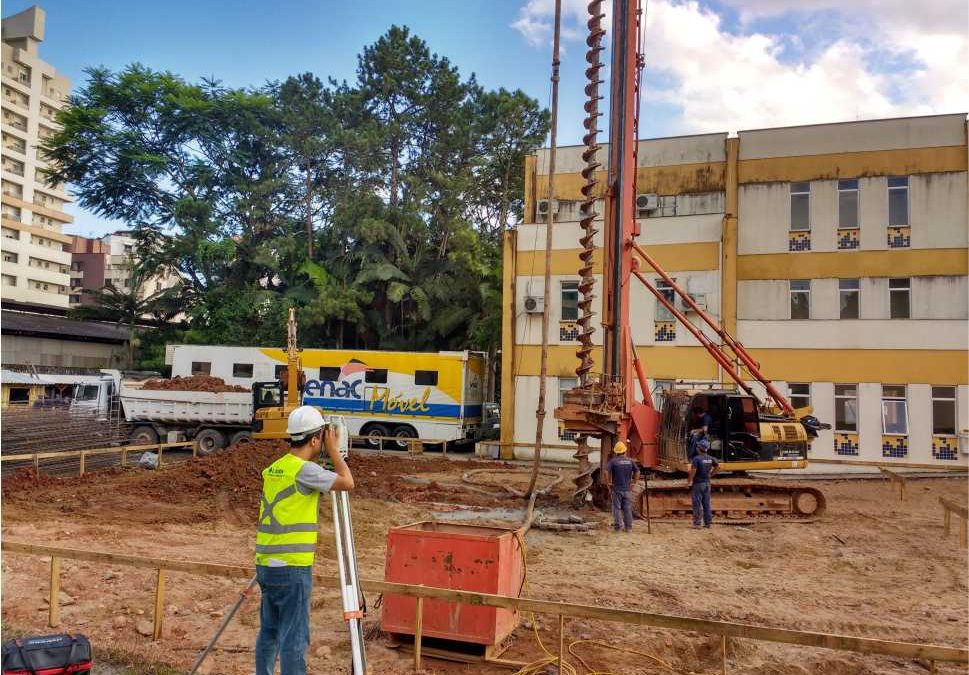 No mês de janeiro do ano de 2016, realizamos a locação e o acompanhamento da obra do SENAC. Obra essa que tinha como principal objetivo a ampliação da Unidade SENAC de Joinville. Passamos alguns dias executando a demarcação de pontos de referência, cotas e eixos para o estaqueamento deste empreendimento.